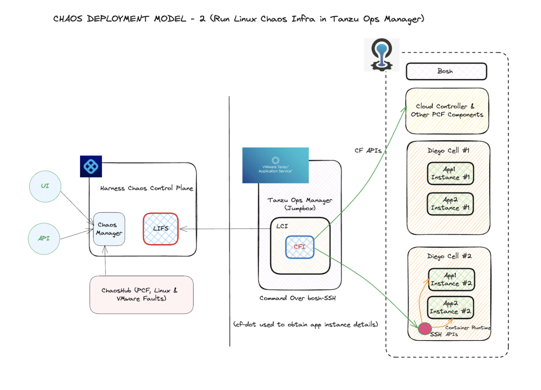 : Installs LCI and CFI in a Diego Cell VM. This allows the fault blast radius to be confined to the app containers and application processes on the cell under test only, with respect to purely CF-API driven faults and app instance (or container) level fault types.