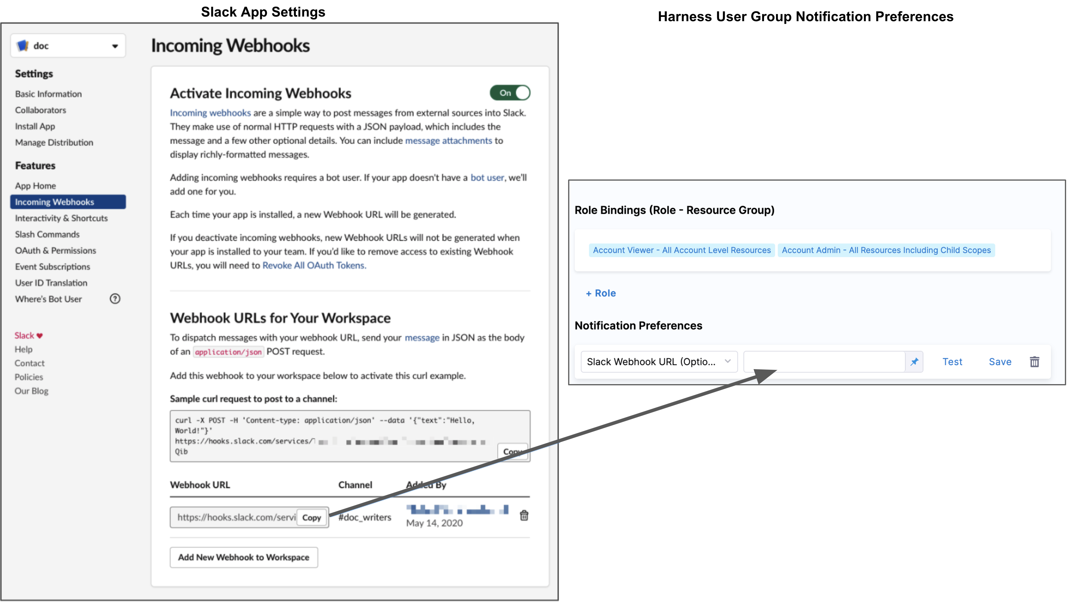 Adding a Slack channel to your Harness User Groups Notification Preferences is as simple as pasting in a Slack Webhook: