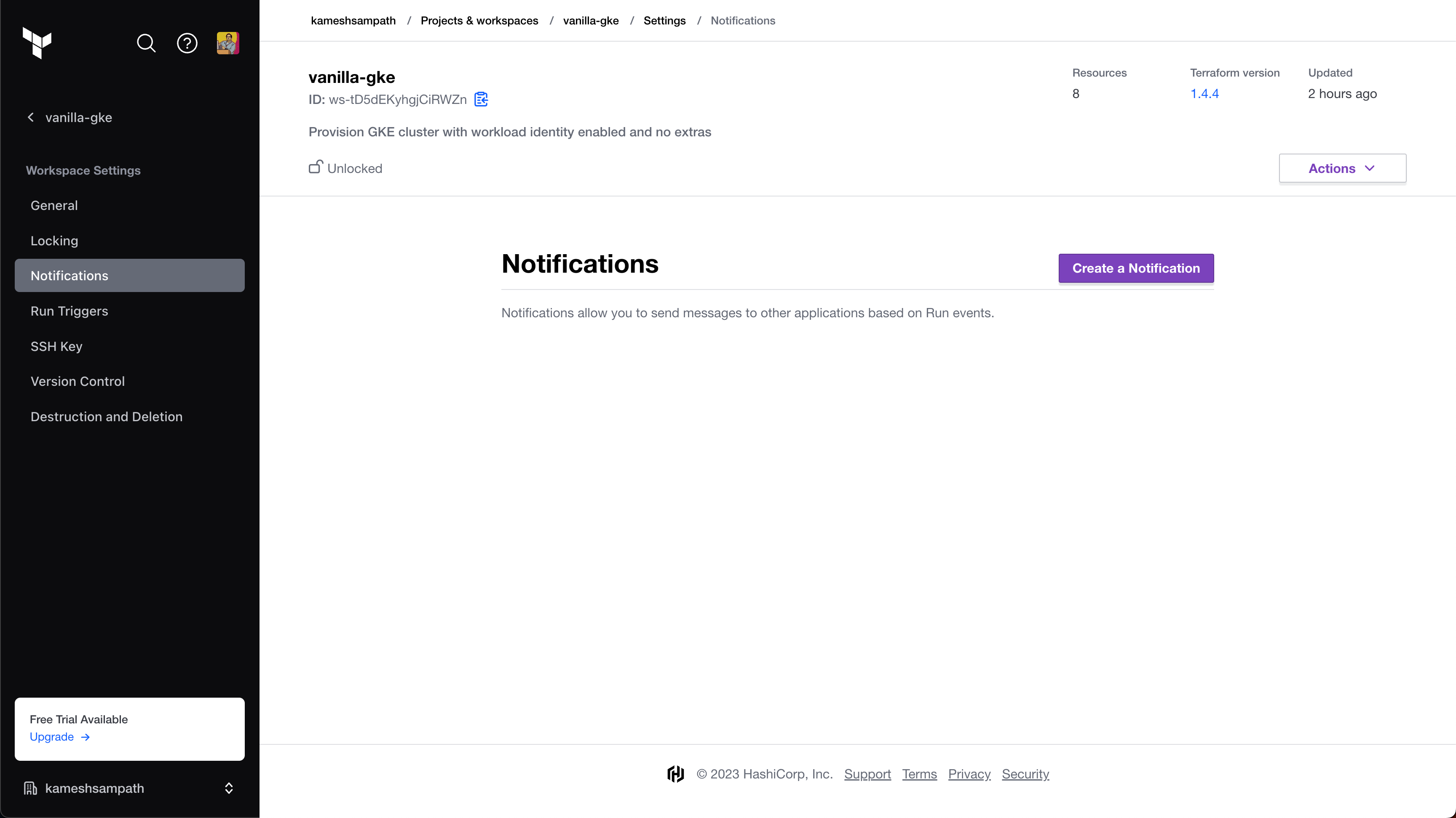 . - tfc-notification-demo: Contains a sample pipeline for this tutorial. Code samples in this tutorial reference this repo by