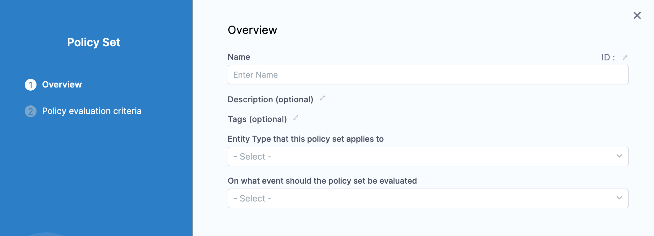 When you create Policy Sets they are applied to all matching entities (for example, Pipelines). Be careful that you do not create a Policy Set that might impact existing Pipelines unintentionally.
